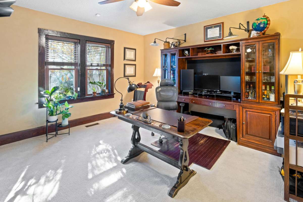 Step back in time with this beautiful all brick 4bedroom, 2bath home filled with unique historic character and modern potential. Situated on over a quarter- acre lot, this property offers endless possibilities both inside and out. Inside, you’ll find a warm and welcoming layout, original hardwood floors beneath the carpet, an original clawfoot tub, and a coal- burning fireplace in the downstairs bedroom—plus two additional fireplaces that can all be made operational with simple gas inserts. The home’s timeless details provide the perfect backdrop for your personal touch. Outside, enjoy a large fenced in backyard, carport, a mini barn thats ideal for storage or hobbies , and a detached studio! The studio offers fantastic potential to be converted into a guest house or even a home office.