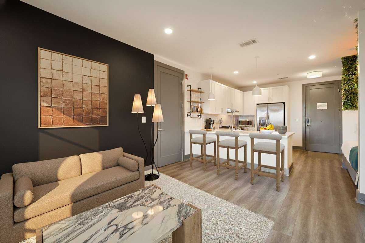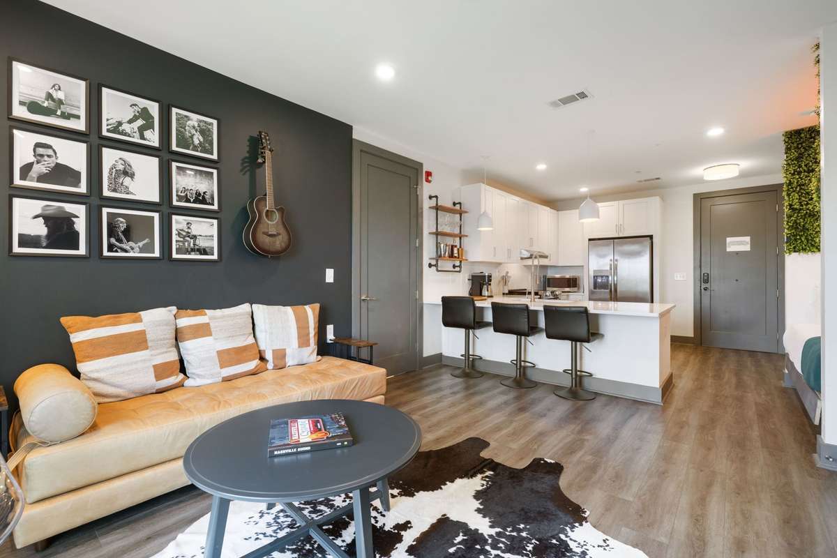 Building amenities include secure access, a rooftop lounge with city views, fitness center, laundry facilities, and an ADA- accessible elevator. A turnkey property, ready to enjoy or offer as a stylish Nashville getaway.