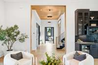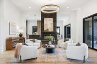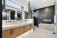 Inside, the design speaks through contrast and craft: black brick, warm oak, and glass are balanced by tailored millwork, sculptural lighting, and multiple fireplaces that create intimacy and atmosphere. The expansive primary suite on the main level serves as a private retreat — with a spa- like bath, walk- in closet, and direct access to the courtyard — blending scale, light, and seclusion in a way rarely found in the city.