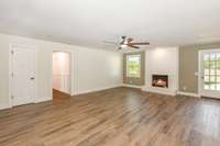 No detail has been overlooked in the complete transformation of this property. Major updates include all- new permitted electrical service, new plumbing, new natural gas service, new subfloor and drywall throughout, all new windows, doors, siding, gutters, light fixtures, fresh paint inside and out, and more! Interior upgrades showcase a brand- new kitchen with new cabinets, countertops, sink, backsplash and appliances, a new butler’s pantry with " appliance garage" , a spacious laundry room/ walk in pantry, all new bathrooms with tile showers, updated vanities and fixtures, built- in closet organizers, and a cozy ventless gas fireplace!