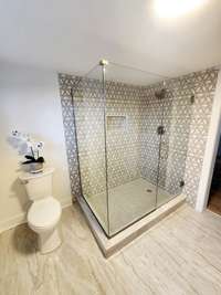 This is the second bathroom with the same tile as the primary.  This bathroom is huge and also has a window for fresh air.