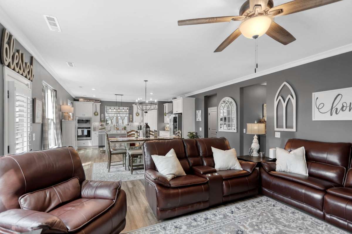 Welcome to this like- new beauty in Chelsea’s Way, perfectly positioned on the largest lot in the neighborhood! Offering one of the community’s most spacious floor plans, this home blends comfort, functionality, and style. The open- concept living space is flooded with natural light and flows seamlessly into a chef’s kitchen featuring a porcelain farmhouse sink, gas range, and a generous island - perfect for gatherings and everyday living. Upstairs, the master retreat boasts vaulted ceilings, a spa- inspired ensuite bath, and a walk- in closet. A versatile flex room on the main level can serve as a home office or additional bedroom. The finished basement is ideal for multi- generational living or guests, complete with its own private entrance, kitchenette, and full bath. Step outside to enjoy a large deck off the living room, a covered patio, and a fully fenced backyard that’s perfect for entertaining, pets, or play. Plus, the full- yard irrigation system keeps the lawn lush and green year- round with ease. Set on a corner lot, this home offers both space and privacy while keeping you just minutes from I- 65, local shopping, schools, and everything White House and Cross Plains have to offer.