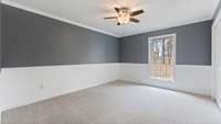 Upper level bonus area is 22x31 Sq. Ft. of multipurpose space for media room, play room, craft room etc. with a 7x8 ft. walk in closet. Also included is a walk in floored attic space with built in shelves.