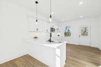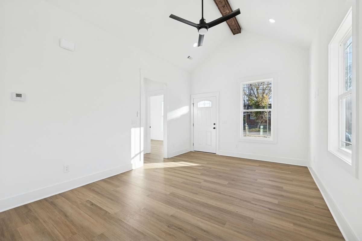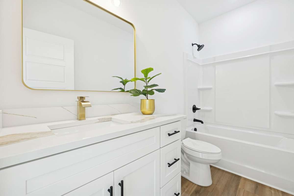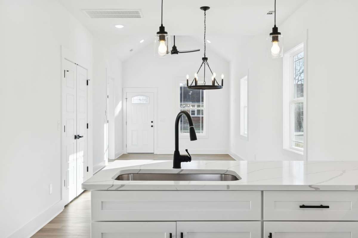New construction in Springfield with thoughtful finishes and a functional layout. This home offers an open living area filled with natural light, vaulted ceilings with an exposed beam, and a spacious kitchen with white cabinetry, quartz countertops, under cabinet lighting and modern black fixtures. The primary suite features its own vaulted ceiling, a bathroom with quartz counters, gold fixtures, and a tub- shower combo. The guest bath includes matching finishes for a cohesive feel. Enjoy a covered front porch with a beautiful gable detail and a covered back patio overlooking a level, tree- lined backyard. Conveniently located close to schools, parks, and downtown Springfield. Move- in ready!