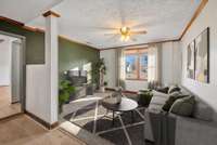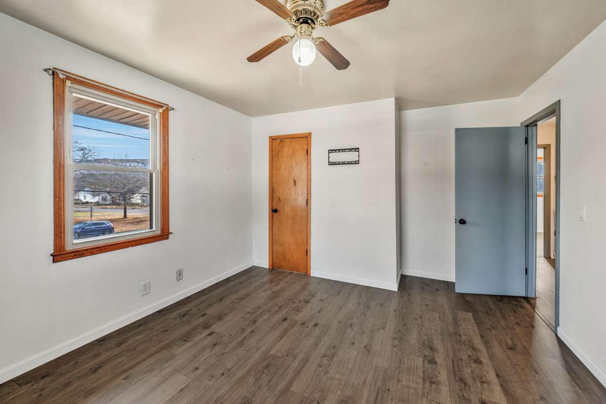The layout works. Downstairs, you' ll find a big, open floor plan where the kitchen flows into the living room, perfect for everyday life or having people over. There' s also a separate den on the main level, giving you extra space to spread out, entertain, or just unwind at the end of the day. Downstairs also houses the half bathroom and the utility/ laundry room. New flooring runs throughout the home, keeping everything fresh and move- in ready.