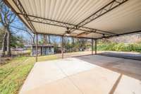 Out back, a fenced- in yard offers a safe space for kids or pets, and a large carport provides covered parking or doubles as an outdoor entertainment area when you need it. There' s also a storage shed that stays with the property, plus the washer and dryer are included.