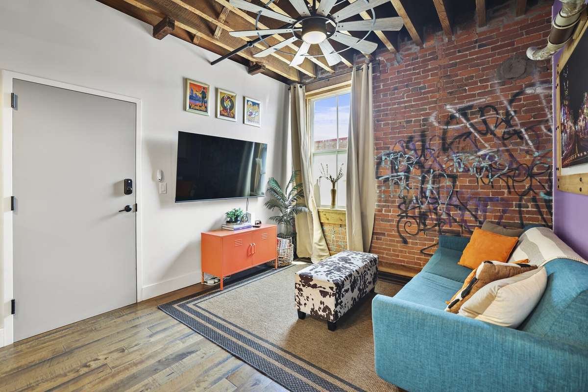 Explore this creative and unique NOO- STR in the heart of Nashville. Nestled within the historic 1865 building, Unit 101 is a one- of- a- kind condo featuring 1 bedroom + 1 bathroom. Inside, you’ll be captivated by the exposed brick walls with authentic graffiti and wood rafter ceilings, blending historic charm with modern street style. The kitchen is equipped with sleek white cabinets and stainless steel appliances, offering a clean, contemporary touch. As an investor, your guests will appreciate the historic charm of the building, along with unique amenities like the basement- level speakeasy, pool, bar area and grills for residents to enjoy. This is one of the few condominiums in Nashville that allows short- term rentals, offering endless opportunities. Don' t miss the terrace, where you can take in views of the surrounding neighborhood. This is a fantastic opportunity to immerse yourself in Nashville’s vibrant atmosphere while investing in the city’s booming real estate market.