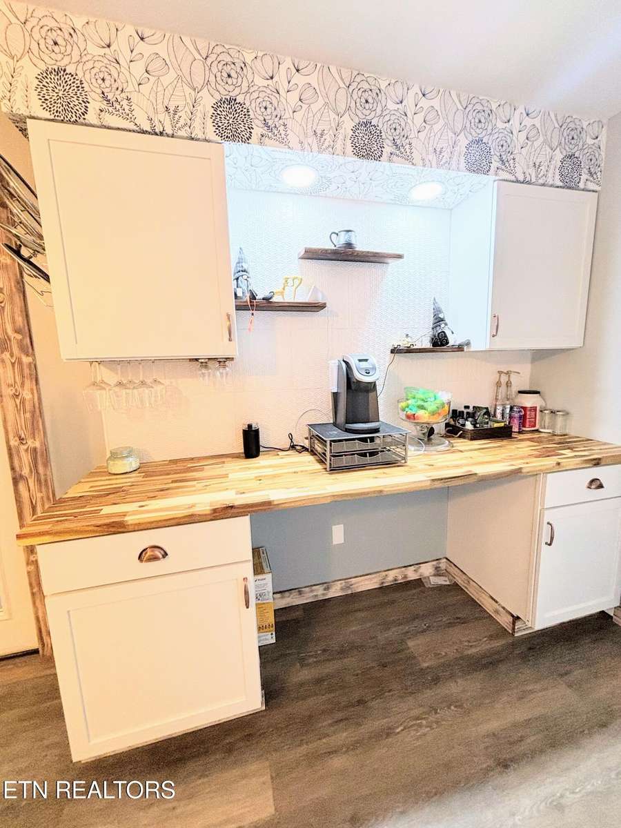 Welcome home to this beautiful property featuring a main- level laundry room and a gorgeous kitchen with a deep apron sink, and a separate butcher block coffee bar. The home is accented with custom Shou Sugi Ban Swedish pine for unique character.
