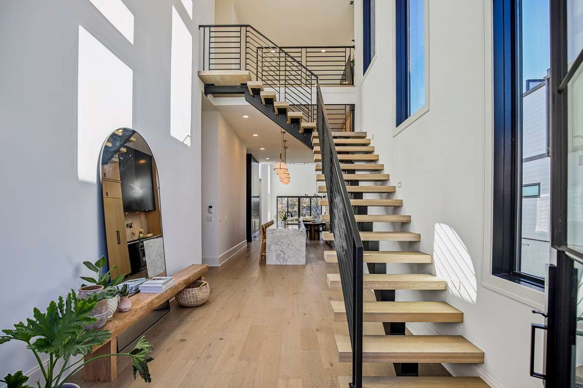 Soaring ceilings and expansive windows create an airy, light- filled ambiance that highlights the home’s sleek, luxurious finishes. The gourmet kitchen is a true showpiece, featuring top- of- the- line appliances, a gas range, and a stunning butler’s pantry complete with a built- in refrigerator. Stunning lighting, exquisite fixtures, and premium materials come together to create an atmosphere of understated sophistication throughout.