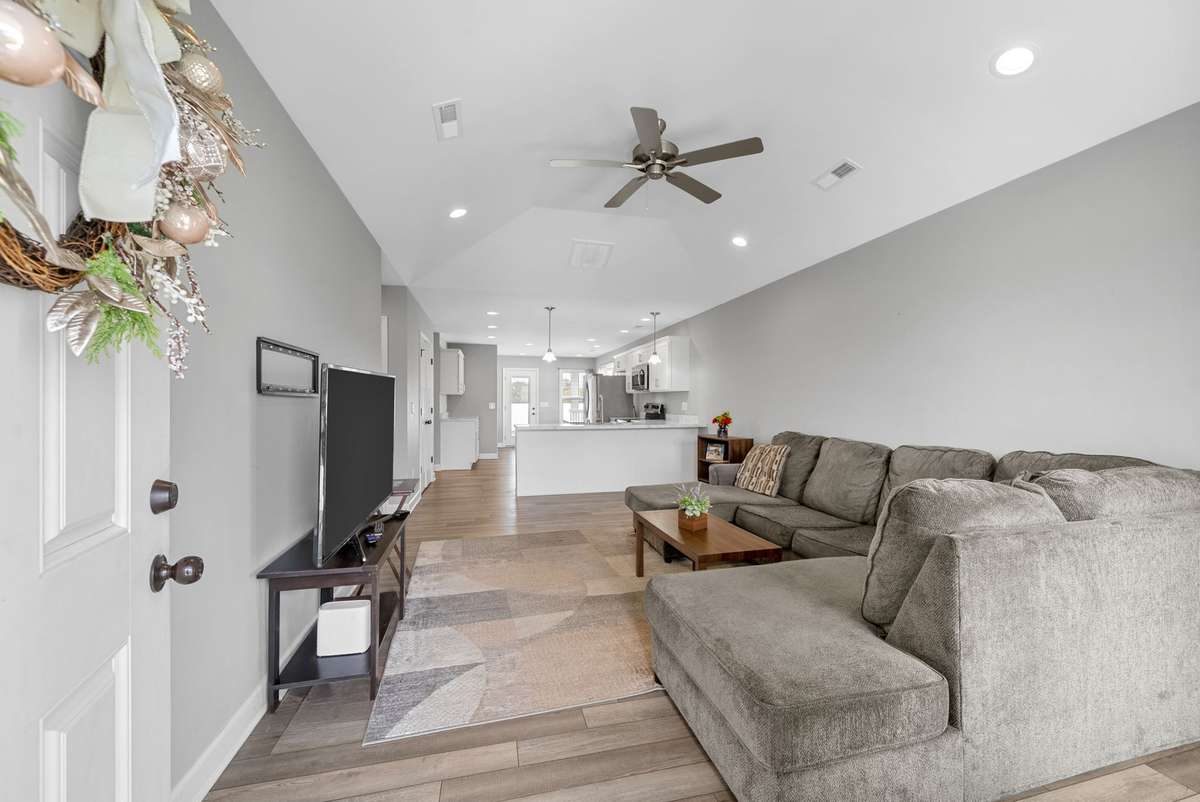 Fort Campbell Blvd , turn right onto Sivley Road. Continue to the 4-way stop and turn left. Turn right onto South Sheridan, which becomes Justify Drive at the stop sign. Continue to the end of the road, turn left onto Seattle Slew, house is on the right.