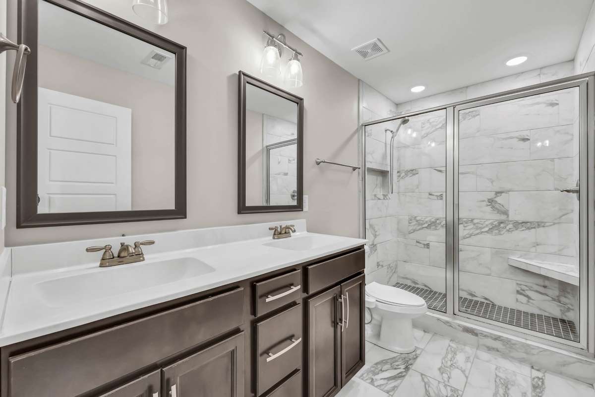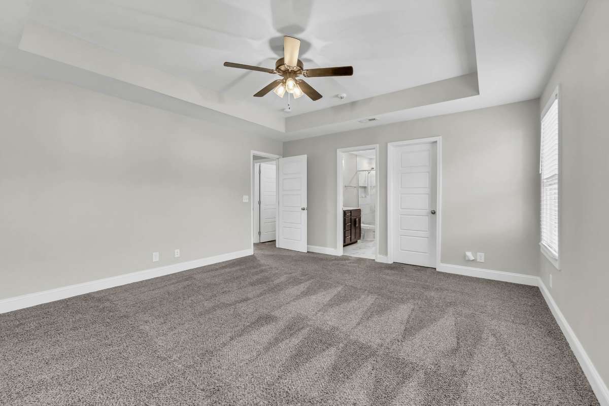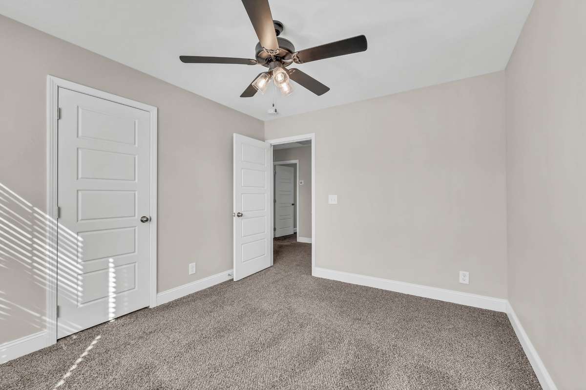 Upstairs, the private primary suite offers a relaxing retreat with a tile shower and double vanities. Two additional bedrooms feature oversized closets, giving everyone plenty of space.