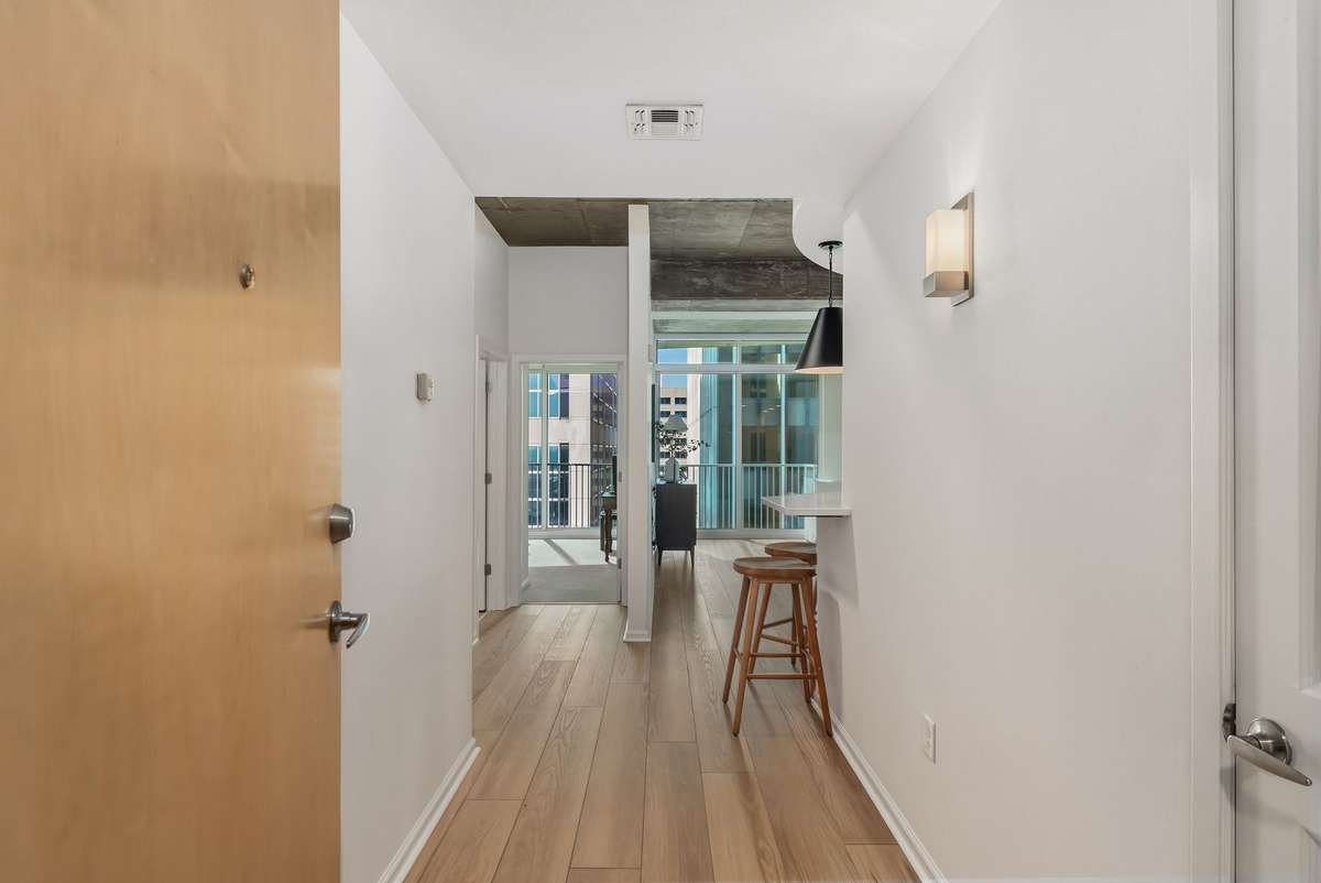 This two bedroom, corner unit is centrally located in downtown and has incredible views from every room with incredible floor- to- ceiling windows. This open concept living condo is filled with natural light and was recently updated with new floors, fresh paint, upgraded light fixtures and new countertops. The pet- friendly Viridian building is filled with amenities including a 24/ 7 concierge, rooftop pool and fitness center, rooftop club space and more. Walkable to Printers Alley, Bridgestone, Ryman Auditorium, Fifth & Broad, and some of the city’s best restaurant scenes, this is a rare opportunity to have luxury downtown living under a million. This unit includes two parking spaces just steps away from the elevator!