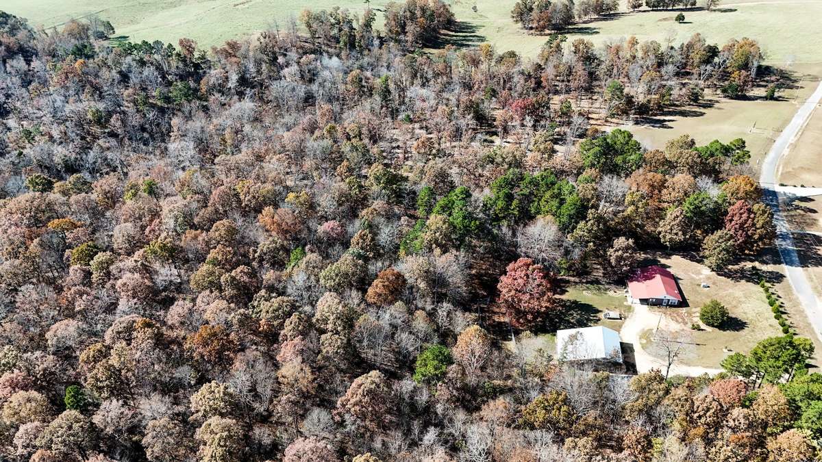 A 30x40 metal shop with water, power, and two garage doors offers functional space for equipment storage, vehicle parking, or workshop needs. Near the road frontage, an approximately two acre open area provides a potential building site for an additional home or family compound, subject to local requirements. This area sits separately from the primary homesite and has direct road access. The tract includes more than 1, 000 feet of road frontage, offering multiple access options and flexibility for future planning.