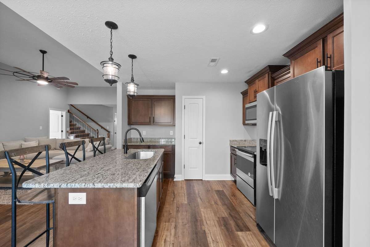 Located in a quiet cul- de- sac, this well- maintained 3 bedroom, 2 bath home with a large bonus room offers modern comfort and a functional layout. With all the bedrooms on the main level and an open concept design features a spacious kitchen with granite countertops, stainless steel appliances, updated fixtures, and a large island that flows into the inviting living room with a cozy gas fireplace. The primary suite includes a tray ceiling, double vanities, and a walk- in tiled shower. Enjoy outdoor living with a screened deck, additional patio space, and a fully fenced backyard perfect for relaxing or entertaining. This home also includes a security system and sits minutes from shopping, dining, and only 20 minutes to Fort Campbell. This move- in ready home offers incredible value and convenience.