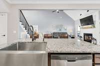 Welcome to Wellington Fields, where space, style, and comfort come together in this beautifully designed 4- bedroom, 3- bath home offering 2, 800 square feet of thoughtfully planned living. With 2 bedrooms and 2 full baths on the main level, this layout works for a wide range of needs. Step inside to a bright, open floor plan highlighted by tall ceilings and wide- plank light flooring. The living room features a striking shiplap fireplace and flows seamlessly into the dining area and kitchen. The kitchen stands out with ceiling- height white cabinetry, granite countertops, stainless steel appliances, a herringbone backsplash and a large island with apron- front sink and built- in electrical—perfect for cooking, gathering, and everyday living. A formal room with coffered ceilings and wainscoting offers the ideal flex space for an office or additional entertaining. The main- level primary suite feels like a retreat with its double tray ceiling, turret- style sitting area, and a spacious en- suite complete with dual vanities, a separate tub and shower, tile flooring, and a vaulted ceiling. A second main- level bedroom and full bath add convenience for guests or additional family members. Upstairs features two more bedrooms, a full bath with granite vanity, and a generous bonus room offering even more flexibility. Outdoor living shines with a saltwater pool featuring a waterfall, brick surround, deck jets, and built- in seating areas below the water line. The covered patio includes a mounted TV, making it a perfect space for relaxing or entertaining. The fully fenced, level backyard also includes a storage building. Additional features include a dedicated laundry room with cabinetry and utility sink, a two- car garage with opener, extended driveway, city water and public sewer, central electric HVAC with ceiling fans, and a full suite of stainless steel appliances. Zoned for Kirkwood Elementary, Middle, and High School.