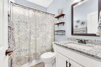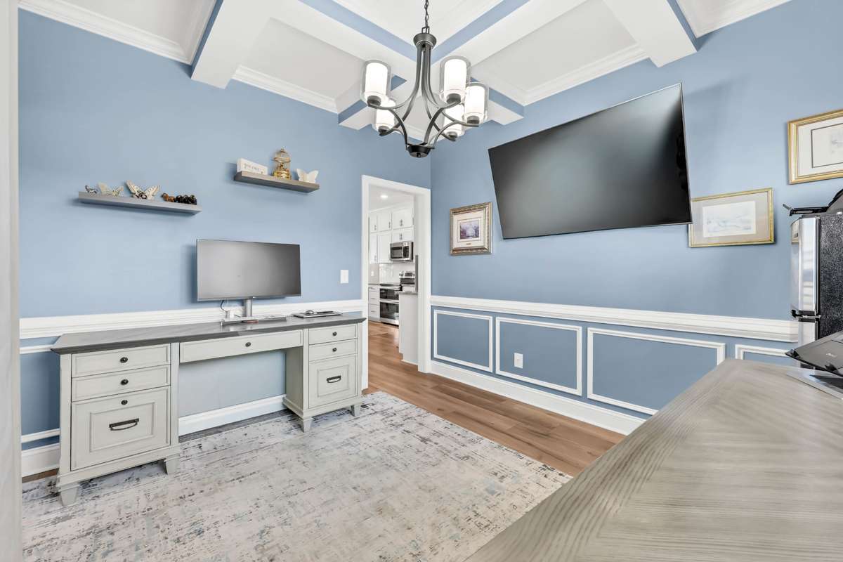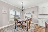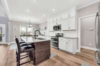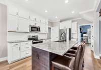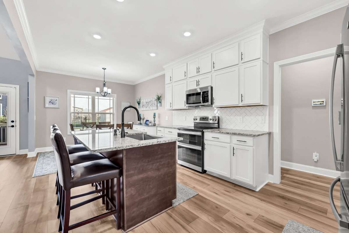 Welcome to Wellington Fields, where space, style, and comfort come together in this beautifully designed 4- bedroom, 3- bath home offering 2, 800 square feet of thoughtfully planned living. With 2 bedrooms and 2 full baths on the main level, this layout works for a wide range of needs. Step inside to a bright, open floor plan highlighted by tall ceilings and wide- plank light flooring. The living room features a striking shiplap fireplace and flows seamlessly into the dining area and kitchen. The kitchen stands out with ceiling- height white cabinetry, granite countertops, stainless steel appliances, a herringbone backsplash and a large island with apron- front sink and built- in electrical—perfect for cooking, gathering, and everyday living. A formal room with coffered ceilings and wainscoting offers the ideal flex space for an office or additional entertaining. The main- level primary suite feels like a retreat with its double tray ceiling, turret- style sitting area, and a spacious en- suite complete with dual vanities, a separate tub and shower, tile flooring, and a vaulted ceiling. A second main- level bedroom and full bath add convenience for guests or additional family members. Upstairs features two more bedrooms, a full bath with granite vanity, and a generous bonus room offering even more flexibility. Outdoor living shines with a saltwater pool featuring a waterfall, brick surround, deck jets, and built- in seating areas below the water line. The covered patio includes a mounted TV, making it a perfect space for relaxing or entertaining. The fully fenced, level backyard also includes a storage building. Additional features include a dedicated laundry room with cabinetry and utility sink, a two- car garage with opener, extended driveway, city water and public sewer, central electric HVAC with ceiling fans, and a full suite of stainless steel appliances. Zoned for Kirkwood Elementary, Middle, and High School.