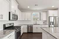 This home features an open- concept layout and also include a tankless water heater and a whole- house water filtration system. The large eat- in kitchen offers a spacious island that doubles as a breakfast bar, perfect for gatherings and everyday living.
