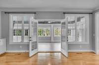 At the heart of the home, the living room with custom built- ins flows easily into the kitchen, breakfast nook, and formal dining room, creating a welcoming space for gatherings of any size. Enjoy nearly 500 square feet of additional living space in the fully enclosed covered patio—perfect for relaxing year- round—or step outside to the adjoining patio for grilling and outdoor fun.