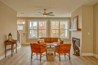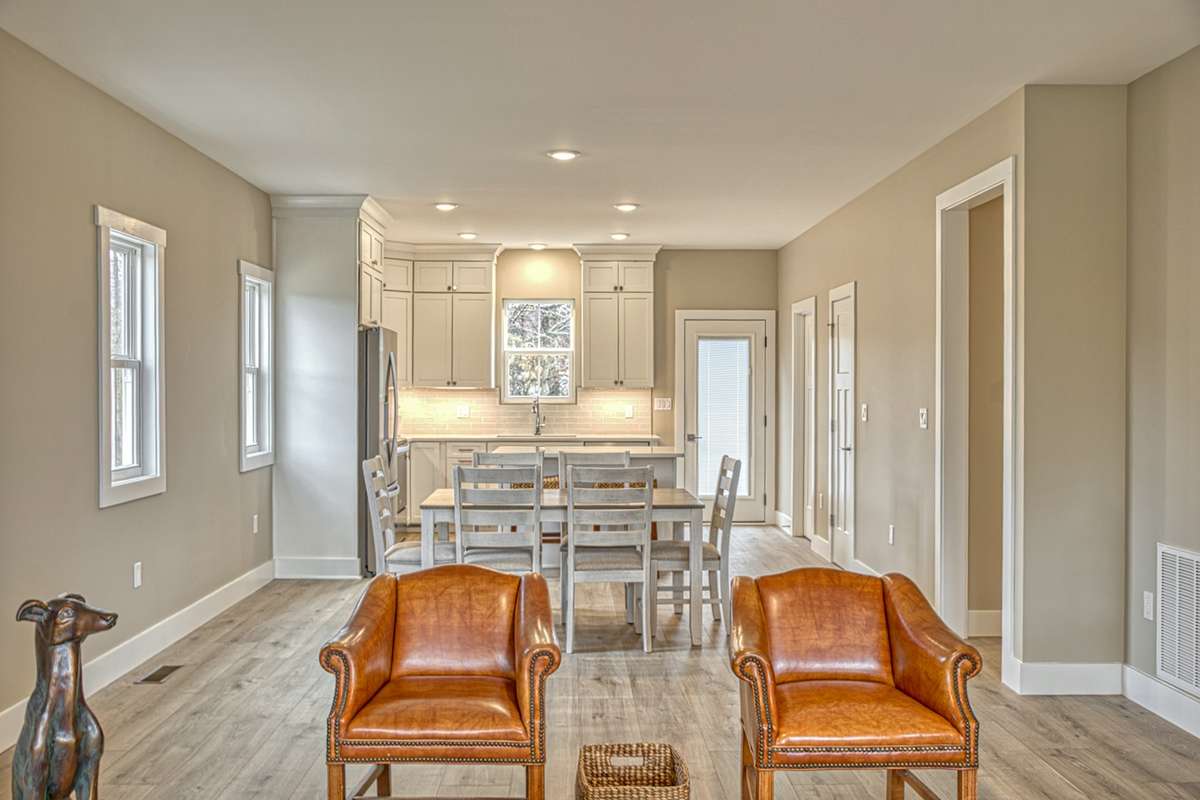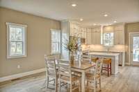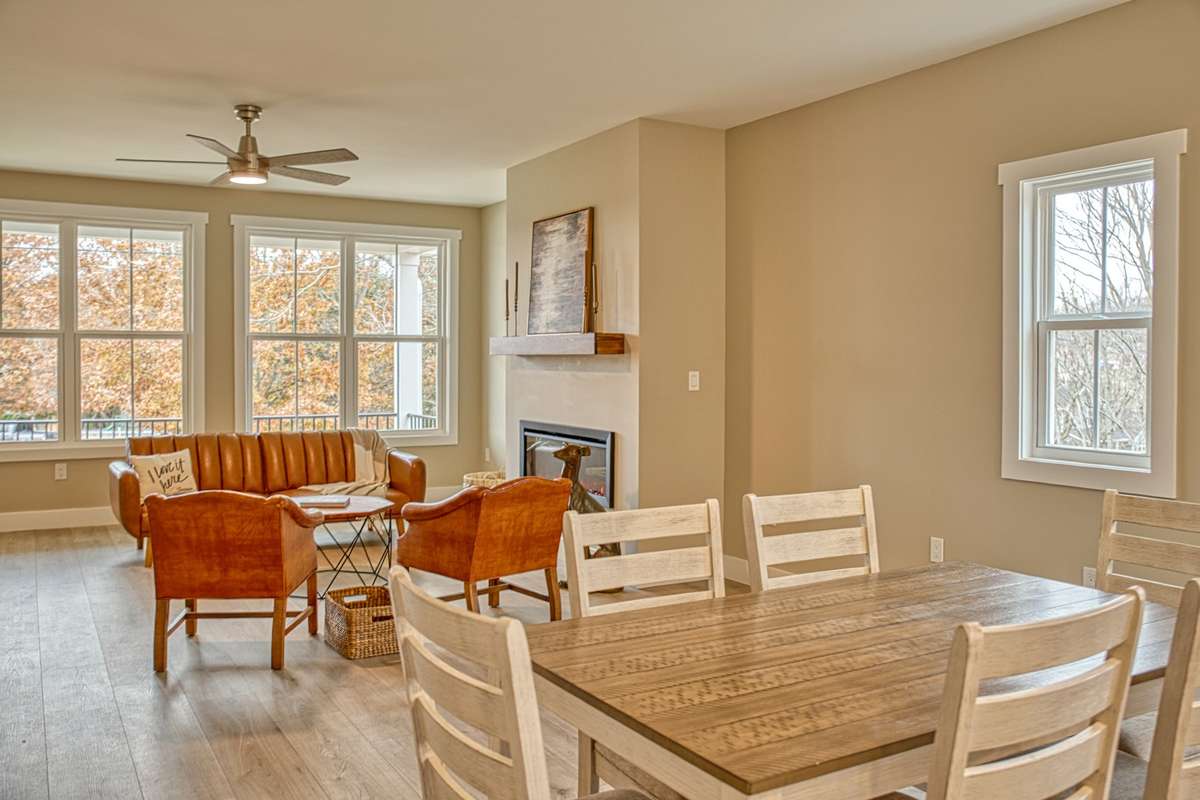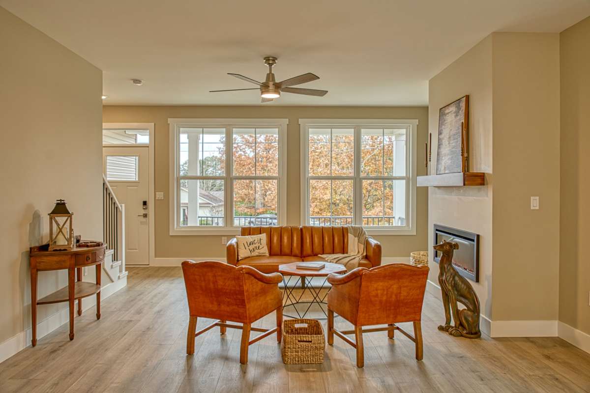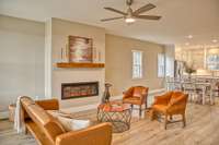 Step onto the inviting front porch and into a modern, thoughtfully designed interior. A warm and cozy fireplace anchors the living space and flows seamlessly into a spacious dining room and kitchen, where floor- to- ceiling cabinetry provides both elegance and abundant storage. A walk- in pantry and three storage closets on the main level help to keep your life organized.