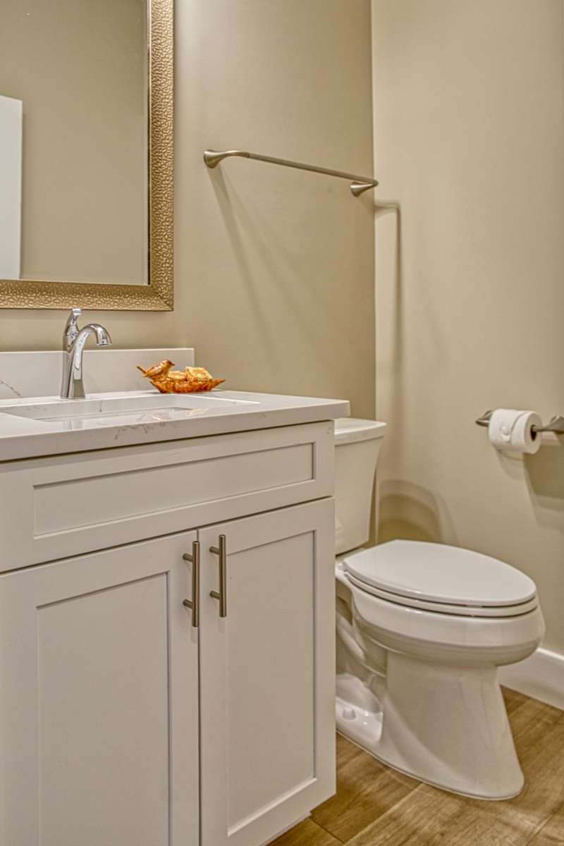 The main- level primary suite is a peaceful retreat filled with natural light. Its spa- inspired bathroom features lighted mirrors and a beautiful tile shower, creating a luxurious experience every single day. Two additional bedrooms, each with its own ensuite bathroom, offer comfort, privacy, and zero morning conflicts.
