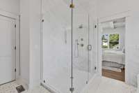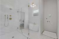 Entertainment is effortless with a dedicated bar and wine fridge, Bluetooth in- ceiling speakers in outdoor patios, master bath, and great room, and four in- ceiling Wi- Fi access points for seamless connectivity.