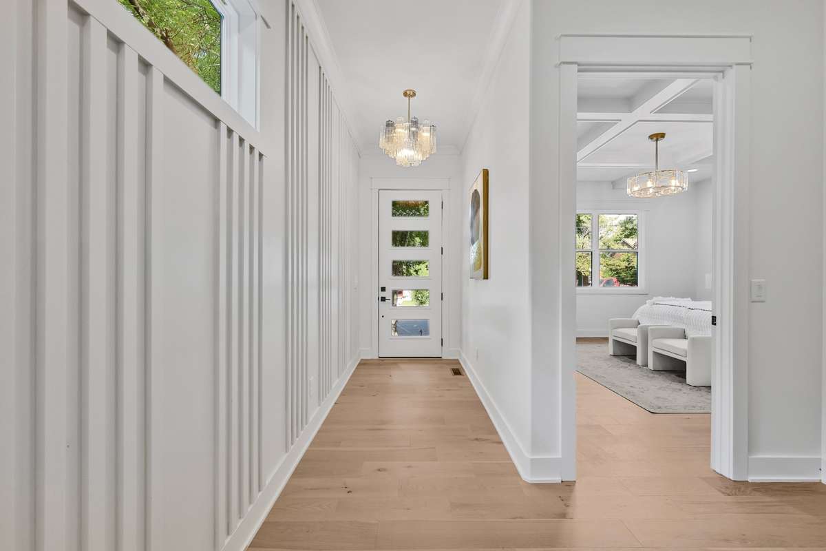 Outdoor living is just as impressive, with a covered front porch, covered back patio, and a 20x12 composite deck. Built with Hardie board siding and a conditioned crawl space, this home offers both durability and energy efficiency. Additional amenities include a tankless gas water heater, acoustic slat wood wall feature, laundry rooms upstairs and downstairs, and meticulous attention to detail in every finish.