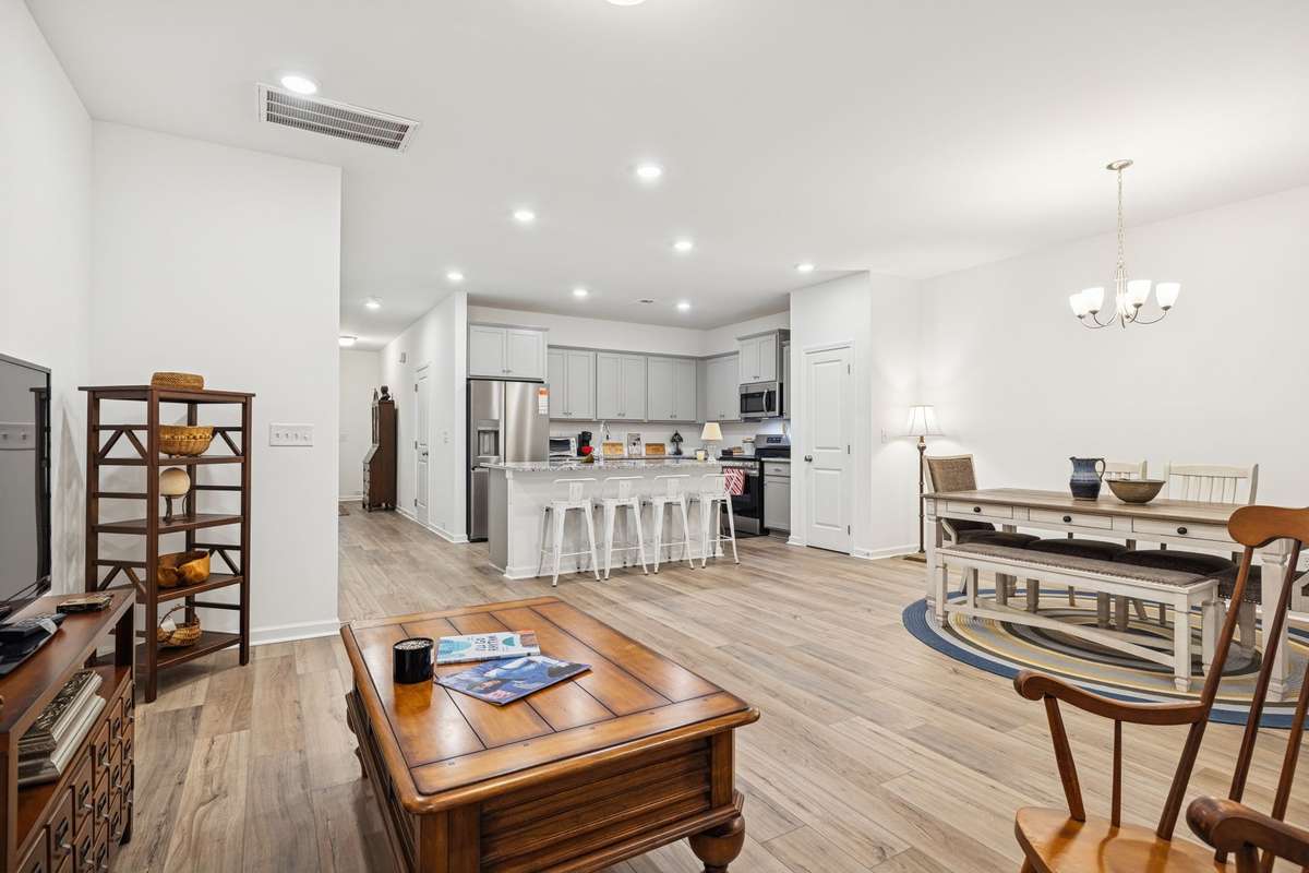 Move in before the Holidays! Homeowner recently purchased and unexpectedly has to relocate. Upgrades of brand new appliances ( fridge, washer, dryer) and custom blinds included unlike comparable units in the community. The Sonoma at Ironhorse is the perfect example of low maintenance living with a modern exterior for great curb appeal. This home lives larger with the open concept floorplan features a center- island kitchen and combined family- dining space. Ample storage is available on the first floor with a pantry, storage closet and coat closet near the powder room. Upstairs, a loft can be used for a workstation, exercise equipment, reading nook or playroom to suit your needs. At the back of the home is an owner' s suite complete with a large walk- in closet, bathroom featuring a water closet and linen closet with an upgraded walk- in shower. Located conveniently upstairs is a walk- in laundry room, a full bathroom, and two additional bedrooms at the front of the home. Back of home has a beautiful wooded creekside view! Can be sold partially furnished.