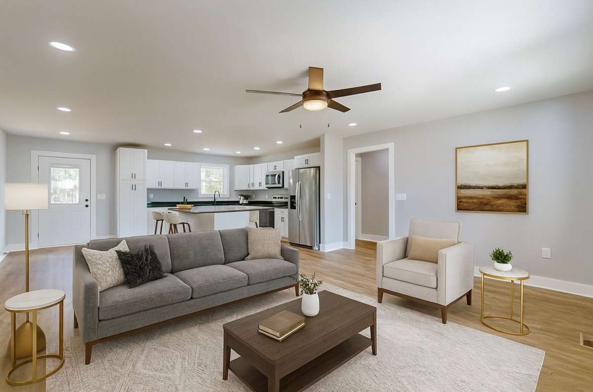 Beautifully finished 3- bedroom, 2- bath home featuring an open- concept layout with luxury vinyl plank flooring throughout. The kitchen offers stainless steel appliances, white shaker cabinets, and ample counter space—perfect for everyday living and entertaining. Spacious bedrooms and spa- like bathrooms provide comfort and style. Enjoy the convenience of an attached 2- car garage and a desirable location close to local amenities. This new home combines modern design, quality finishes, and functional living—ready for its first owner!