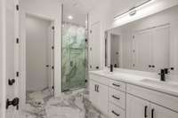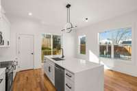 Seller offering generous incentives that can be applied towards closing costs, rate buy- down, and titles fees. Restrictions apply. Stunning New Construction Loaded with Upgrades! This thoughtfully designed home features sand- and- finish hardwood floors throughout, an open floor plan, and soaring 10- ft ceilings on both floors. Elegant 8- ft doors enhance the upscale feel. Inside, you’ll find a main- floor bedroom with its own luxurious ensuite bath, perfect for guests or multi- generational living. The kitchen is equipped with quartz countertops, waterfall island, stainless steel appliances, and ample space for entertaining. This home offers 4 spacious bedrooms, 3. 5 baths, and includes the peace of mind of a 1- year builder’s warranty. Vaulted ceiling upstairs. No HOA, Centeral location close to major interstates. Don’t miss this incredible opportunity! Schedule your showing today and experience the quality and craftsmanship firsthand! Great value!