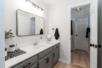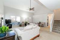 Charming Updated Home with Private Backyard Oasis * Welcome to this beautifully updated home that blends comfort, style, and functionality. As you enter, you' re greeted by a spacious great room featuring a cozy fireplace and soaring ceilings, with an elegant overlook from the upstairs landing that connects two bedrooms and a full bath—perfect for guests or family.