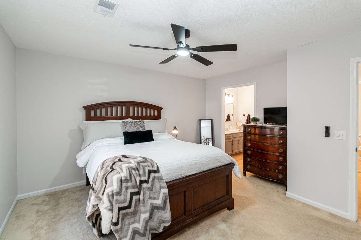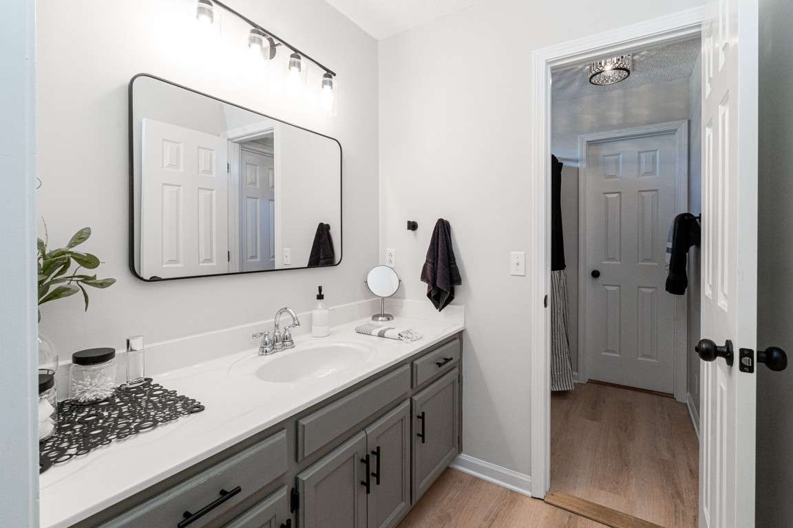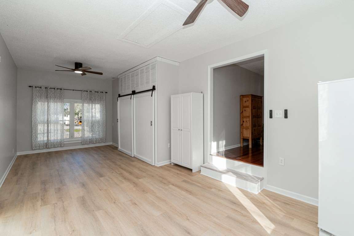 The main- level owner' s suite offers a peaceful retreat with an oversized walk- in closet, providing plenty of storage and convenience. The sunroom adds even more charm, showcasing sliding barn doors that open to a utility closet with a brand- new water heater.