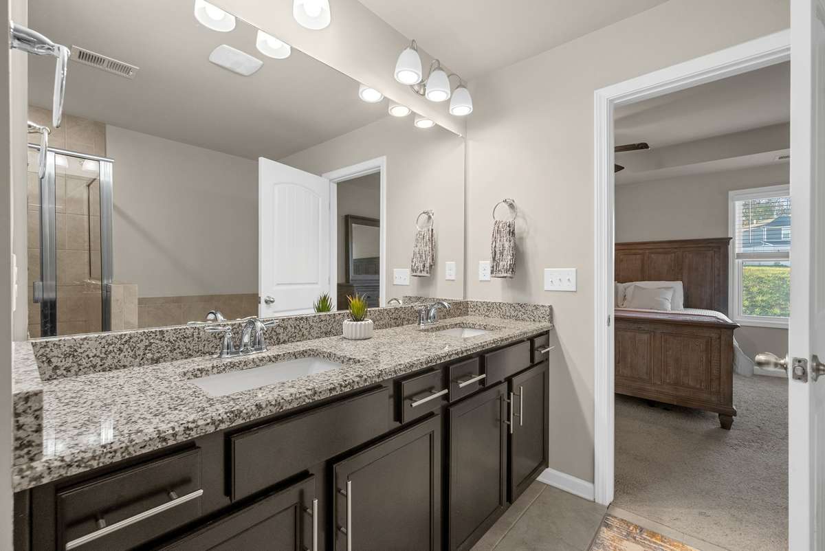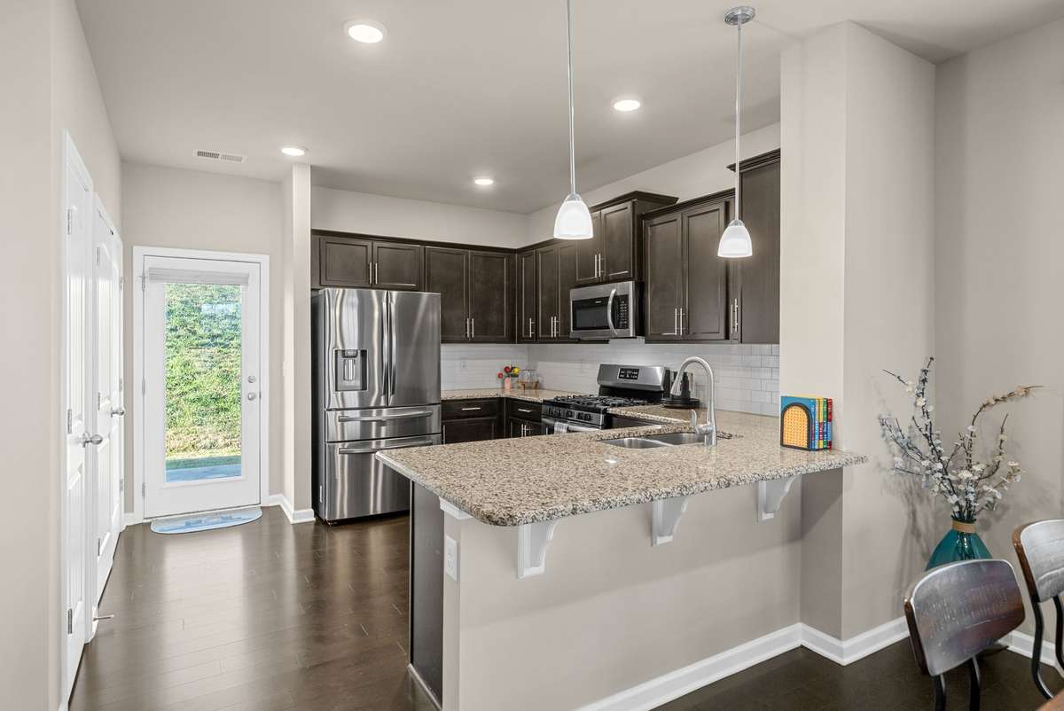 Welcome to this elegant end- unit townhome in the highly desirable Woodmont community! The open floor plan features hardwood floors, granite countertops, tile backsplash, and stainless steel appliances. A main- level guest suite with a full bath offers flexibility for visitors, a home office, or multi- generational living. Upstairs, the spacious primary suite includes vaulted ceilings, a walk- in closet, double vanities, a soaking tub, and a tiled shower. Enjoy maintenance- free living with the HOA covering exterior upkeep, lawn care, and pool access. Just steps from the community pool and guest parking—super convenient for you and your guests! Ideally located just minutes from I- 24, shopping, dining, and Paul Johns Park.