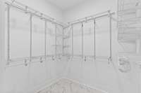 The home includes a two- car garage with a connecting laundry room for everyday convenience. The private primary suite is a retreat of its own with marble tile accents, a large separate shower, double vanity, and a generously sized walk- in closet. Two additional bedrooms are thoughtfully positioned for comfort and functionality.