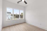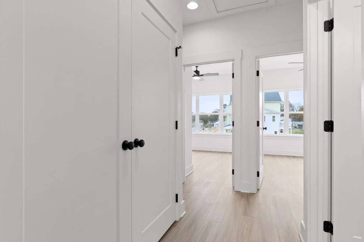 This plan includes multiple outdoor spaces—a covered front porch, a main- level balcony, and a balcony off the primary suite—giving you room to relax, entertain, or enjoy the sunshine.