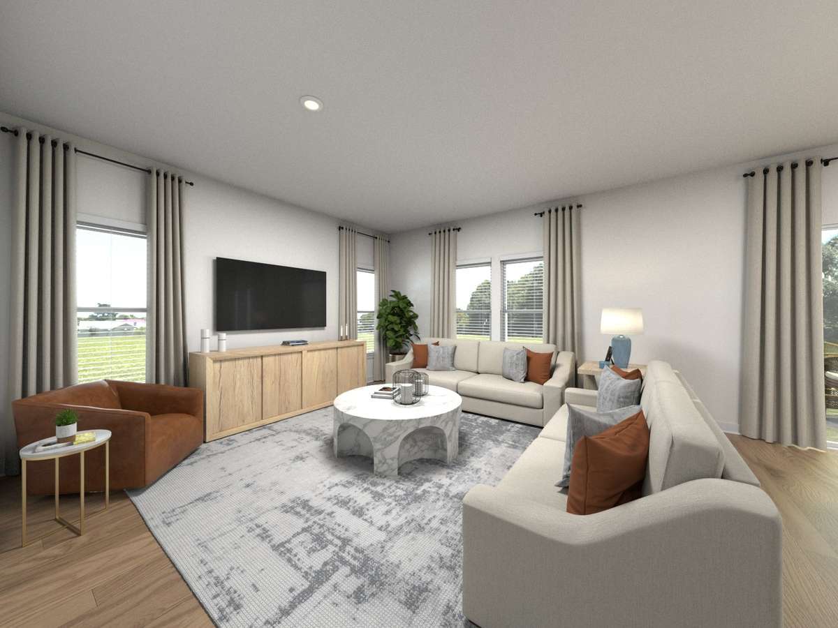 Brand new, energy- efficient home available by Dec 2025! An open- concept layout means you can fix dinner at the kitchen island without missing the conversation in the great room. Use the first- floor flex space as an office or den. Upstairs, the primary suite offers dual sinks and a walk- in closet. River Ridge is now selling in Clarksville, offering stunning single- family floor plans, featuring open- concept layouts and luxurious primary suites. Plus, every home includes a fully sodded yard, a refrigerator, washer/ dryer, and blinds throughout. Schedule a tour today. Each of our homes is built with innovative, energy- efficient features designed to help you enjoy more savings, better health, real comfort and peace of mind.