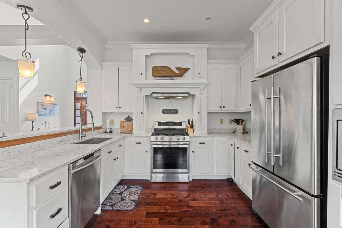 Step inside to find an inviting, open- concept living space designed for comfort and entertaining. Enjoy the outdoors year- round with two screened- in decks, one featuring a cozy fireplace, plus an additional open- air deck on the lower level—all perfect for soaking in the peaceful lake views.