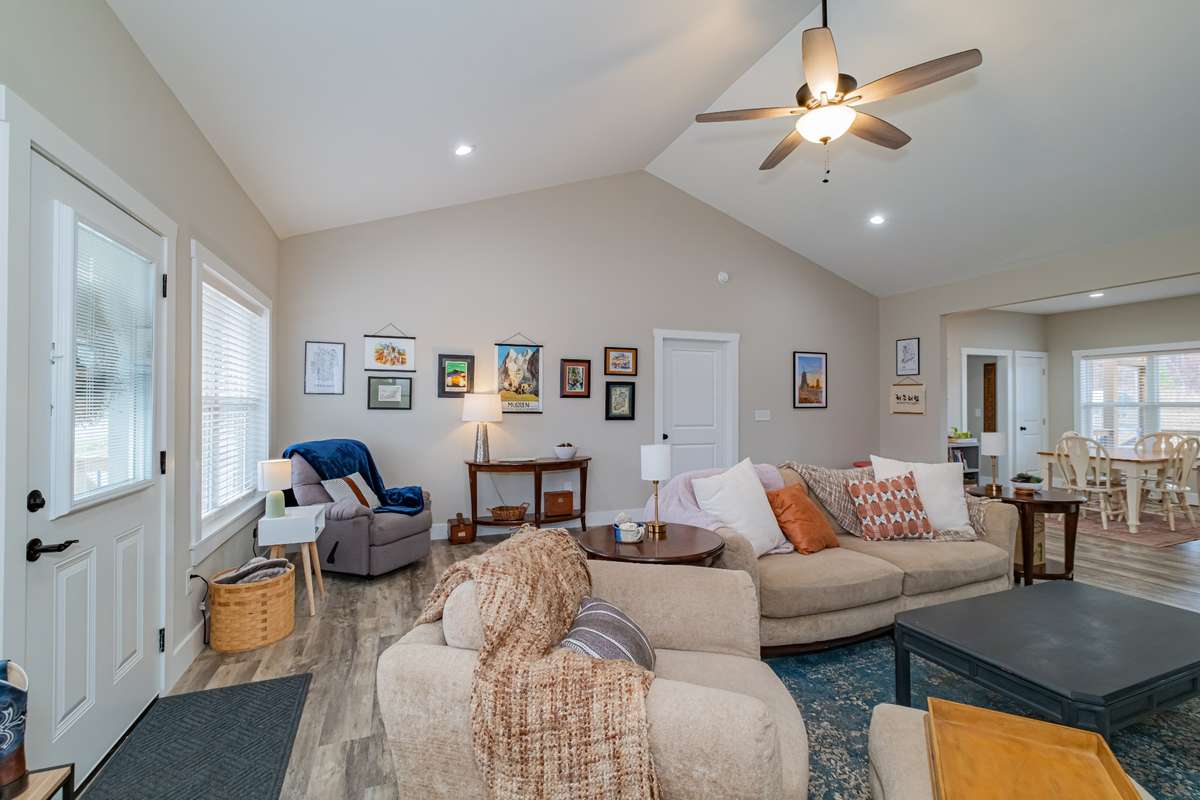 Professional pics coming soon.. . you will not be disappointed! Welcome to 55 Rustling Pines Rd, a beautifully crafted Mennonite- framed 2x6 construction home nestled on the scenic Fredonia Mountain. This new build offers a bright and inviting open floor plan with a vaulted ceiling, an electric fireplace, and custom blinds throughout. The split bedroom layout provides wonderful privacy, while the large yard showcases peaceful mountain views that make every day feel like a retreat. The kitchen features granite countertops, Mennonite- built cabinetry, stainless steel appliances, and a spacious island perfect for gathering. The primary suite includes a gorgeous large tiled walk- in shower and thoughtful finishes throughout. The screened- in back porch offers a peaceful, breezy space to unwind while taking in the quiet beauty of Fredonia Mountain. You’ll also love the separate mud and laundry room, the two car garage, and the front and rear porches, with the back porch fully screened in so you can enjoy the outdoors in every season. Rustling Pines is a quiet, limited development community with just 15 homes planned. Residents enjoy a private road, a community mail receptacle, and a future community garden, all just 45 minutes to Chattanooga.