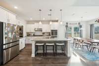 Upstairs, an airy bonus loft overlooks the living room, giving you a flexible space that adapts to your lifestyle—movie nights, a play space, or a creative nook. Three additional bedrooms, with their own walk- in closets, make the upstairs feel spacious and balanced, complete with a full bathroom.