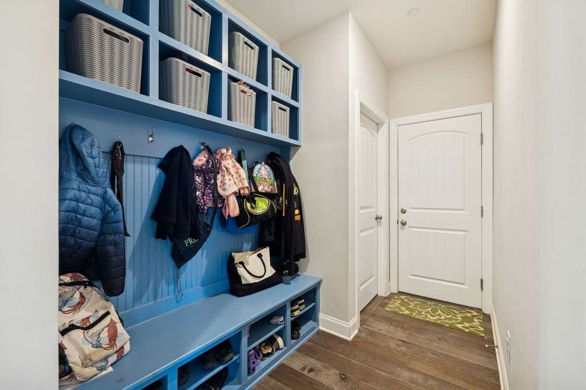 Your main- floor primary suite feels like a private escape, with tray ceilings, a roomy walk- in closet, and a serene bathroom offering double vanities, a tiled shower, and a dedicated make- up counter. Practicality meets comfort with a large main- level laundry and storage room, plus a built- in drop zone right off the garage to keep life organized.