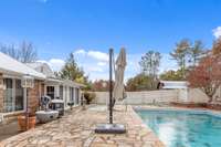 A bright sunroom overlooks the pool and patio, offering year- round enjoyment. The saltwater pool is well maintained with a new pump, filter, salt generator, solar cover, and robot cleaner. The property also includes two storage buildings, mature magnolia trees, and beautifully landscaped grounds. Ample parking accommodates vehicles, a boat, or an RV. City water is supplemented by a private well that' s perfect for gardening.