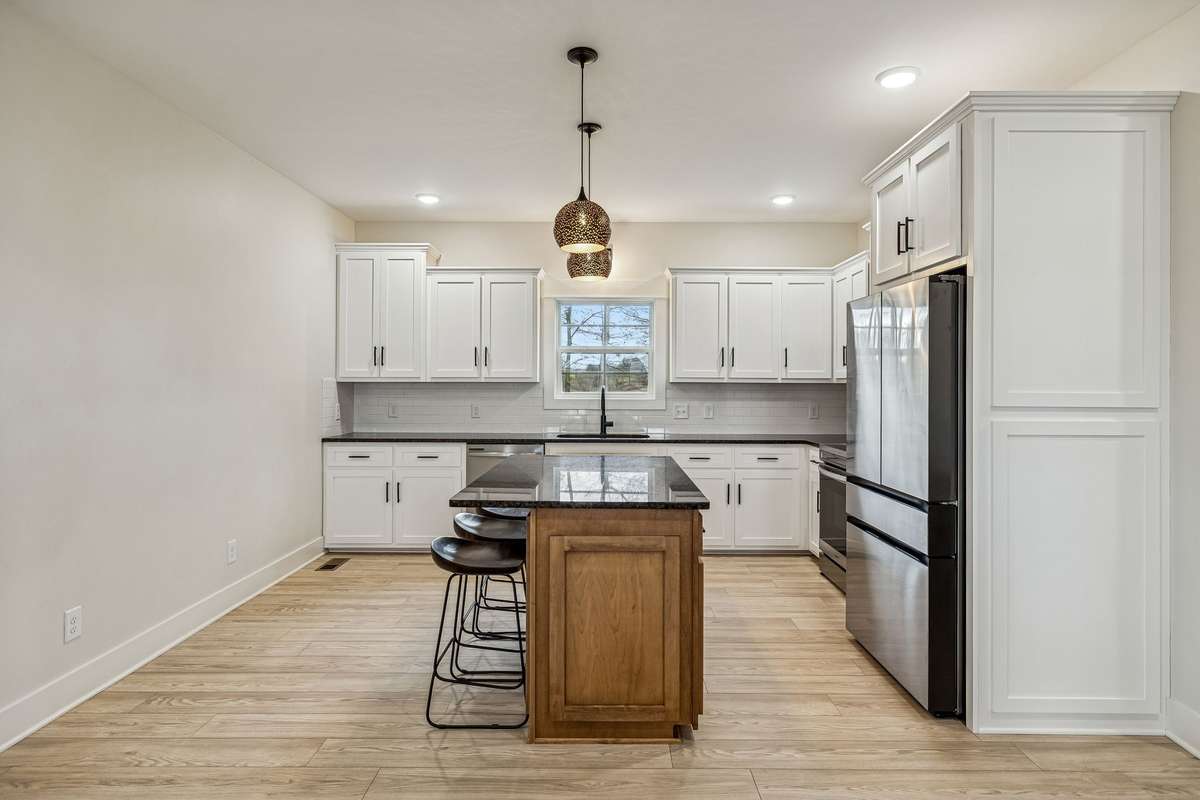 Welcome home to this stunning 3- bedroom, 2- bath new build nestled on a picturesque lot surrounded by beautiful mature trees. Step inside to an inviting open floorplan featuring 14- foot vaulted ceilings, custom cabinetry, granite countertops, and 9- foot ceilings throughout. Enjoy water resistant f flooring in every room for style and durability.