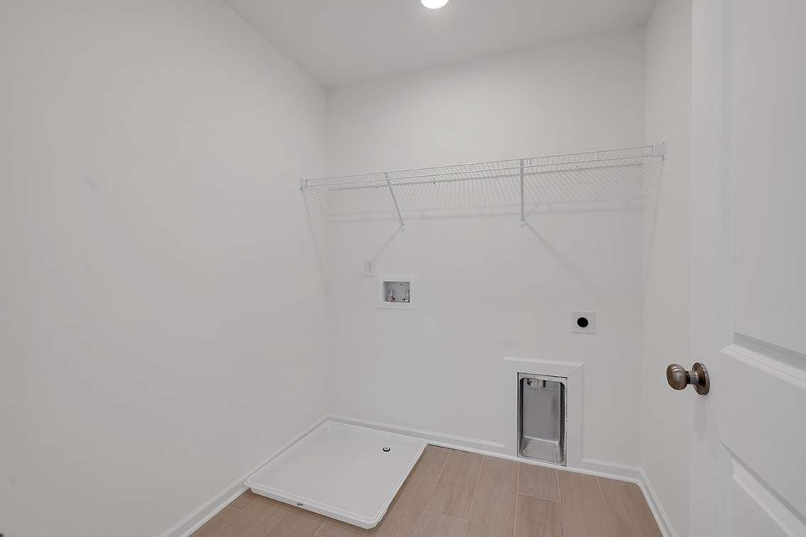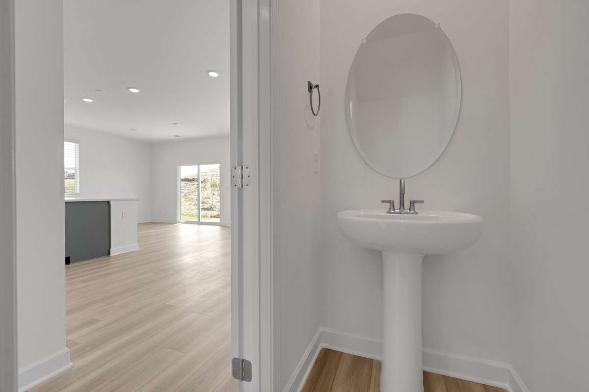 The kitchen pairs beauty and function with white cabinets, ample counter space, and a spacious walk- in pantry. A half bath and extra closet off the main living area add everyday convenience.
