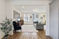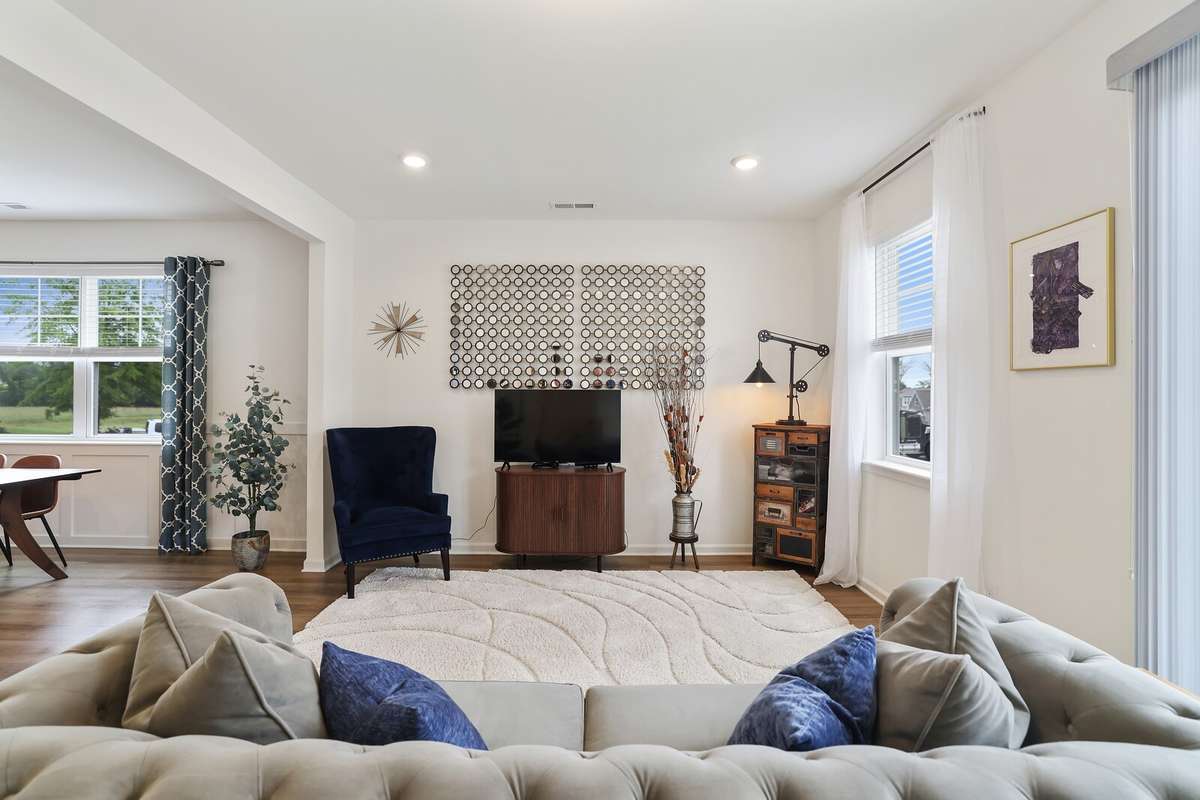 Welcome to 425 Multrees Place - a better- than- new home built in 2023, offering stylish comfort & effortless 1 level living in a vibrant 55+ community. This meticulously maintained home features 1, 441 square feet on a large corner lot. The low- maintenance lifestyle is enhanced by an HOA that includes landscaping. Step inside to discover 2 spacious bedrooms, w/ upgraded carpet. The front bedroom includes added shelving in the closet, making it an ideal option for a home office or hobby space. The primary bedroom offers a relaxing retreat w/ an en- suite bath featuring a large walk- in closet, double vanities, designer lighting, tile flooring, & tiled shower with a frameless glass door & bench seating. The heart of the home is the open- concept living area, including a large family room w/ LVP flooring & a sliding door that leads to a concrete back patio. This patio can be enlarged or fenced in w/ HOA approval. The chef’s kitchen is as functional as it is beautiful, boasting a large eat- in area w/ decorative wainscoting, quartz countertops, a tile backsplash, & stainless steel appliances including a microwave, dishwasher, range, hood, and refrigerator which will convey w/ the home. Soft- close cabinetry & drawers, along with a large pantry, offer ample storage. Additional interior features include a spacious laundry room w/ a washer and dryer that will also remain, & a secondary full bath w/ upgraded tile flooring, a tiled tub/ shower combination, & designer lighting. The current homeowner also added custom blinds throughout the home. The home also features a spacious two- car garage with epoxy flooring. Enjoy access to fantastic community amenities such as pickleball courts, sidewalks, & a pavilion complete w/ a cozy firepit. Located just minutes from shopping, restaurants, & Smyrna’s active senior center ( w/ card games, yoga, line dancing, day trips, and even overnight vacation. ) Up to 1% lender credit on the loan amount if the buyer uses the Seller' s Preferred Lender.