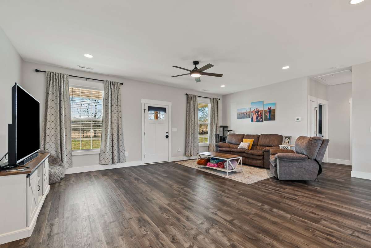 Stunning 3 BR, 2 BA Home offering true Single- Level living and an Inviting Open Layout. The Kitchen features Beautiful Granite Countertops, Soft- Close Cabinetry, a Spacious Island with Seating, and a Full Stainless Appliance Package—including the Refrigerator. The Primary Suite offers a Generous Walk- in Closet and a Well- Appointed Bath with Double Vanities. LVP Flooring and Recessed Lighting run throughout the Home, and the Laundry Room provides Extra Storage. Enjoy Outdoor Living on the Covered Front Porch or the Large Back Deck. Additional perks include a Wide Concrete Driveway and Sidewalk, Spray Foam Insulation for Energy Efficiency, and 9- foot Ceilings. Ideally located just 2. 5 miles from I- 65, with Easy Access to Franklin, Nashville, and Huntsville—all in a Peaceful Country Setting.