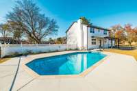 The overhaul includes a new roof, new windows, new flooring, new doors, new gutters, and all- new lighting with added canned lights for a soft, contemporary atmosphere. Comfort is never a question with a new HVAC system plus an additional unit perfectly zoned for the upstairs. Outdoors, the pool area stuns with new concrete surround, creating a crisp, resort- style setting for summer living. The immediate backyard is fully fenced, offering privacy for children, pets, and gatherings, while new landscaping wraps the entire property, giving the home that polished, finished feel from every angle.