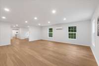 The open- concept layout features a chef’s kitchen with custom cabinetry, sleek appliances, and generous prep space. Bright living and dining areas flow easily together, complemented by fresh paint, new flooring, and updated finishes throughout. All major systems have been recently improved, offering true peace of mind and a move- in- ready experience.