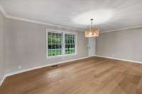 The open- concept layout features a chef’s kitchen with custom cabinetry, sleek appliances, and generous prep space. Bright living and dining areas flow easily together, complemented by fresh paint, new flooring, and updated finishes throughout. All major systems have been recently improved, offering true peace of mind and a move- in- ready experience.