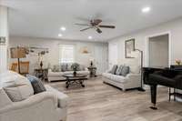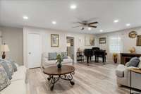 This beautiful updated home offers a fresh modern feel with a host of recent renovations. Located in a peaceful cul- de- sac, It' s perfect for anyone looking for comfort and style. ( New flooring throughout, Renovated Master Bedroom with Added Bath, Renovated Guest Bedroom with Full Bath, Renovated 3rd Full Bath, Remodeled Living Room, Dining Room and Kitchen W/ New Appliances ( Refrigerator, Gas Range, Garbage Disposal & Sink and Kitchen Island) Added New Laundry Room, Renovated Family Room W/ Wood Heater with a peaceful view of the private back yard , Added Study/ Office in Garage ( 160 Sq Ft) , New Paint inside and out, Surveyed Lot W/ Installed Chainlink fence around Back Yard, New Gutters and Downspouts, New Roof 2023, New Blacktop on Drive 2023, Covered front porch and back deck, Some new Landscaping. The home is move- in ready, with thoughtful updates throughout to make it both functional and stylish. Don' t miss your chance to own this newly- renovated gem!