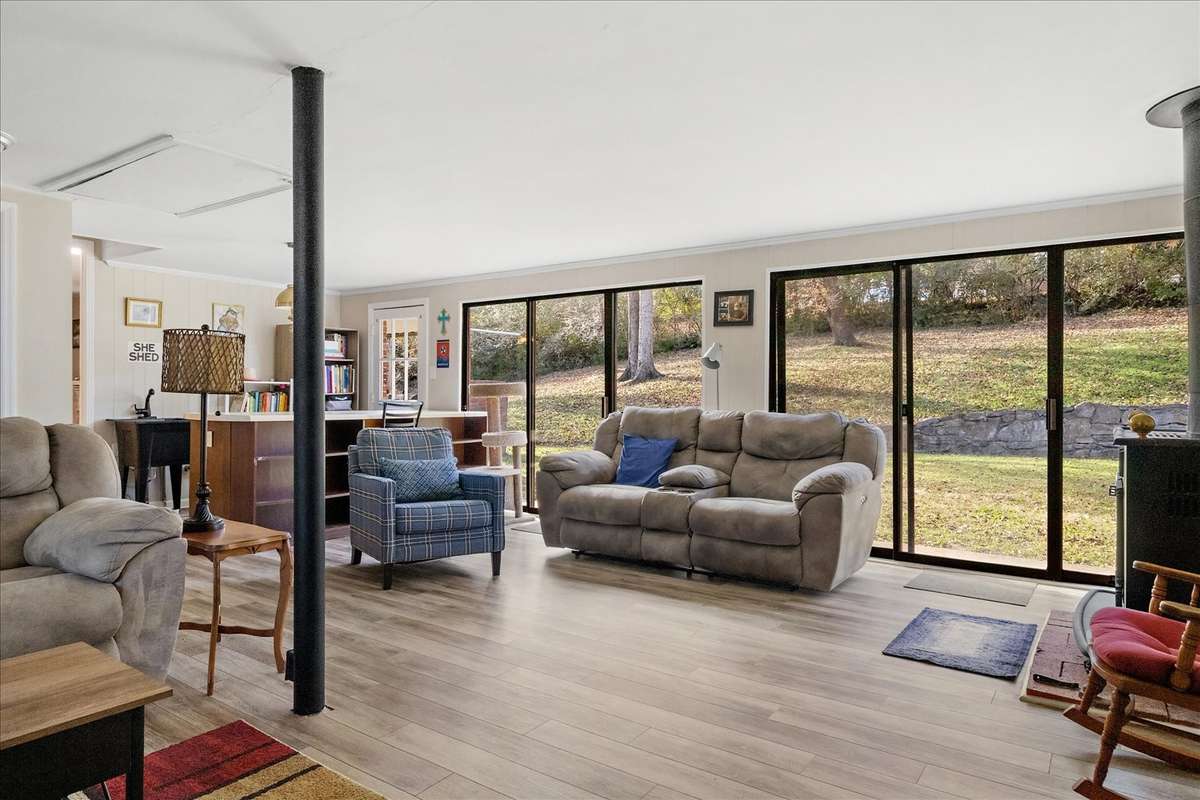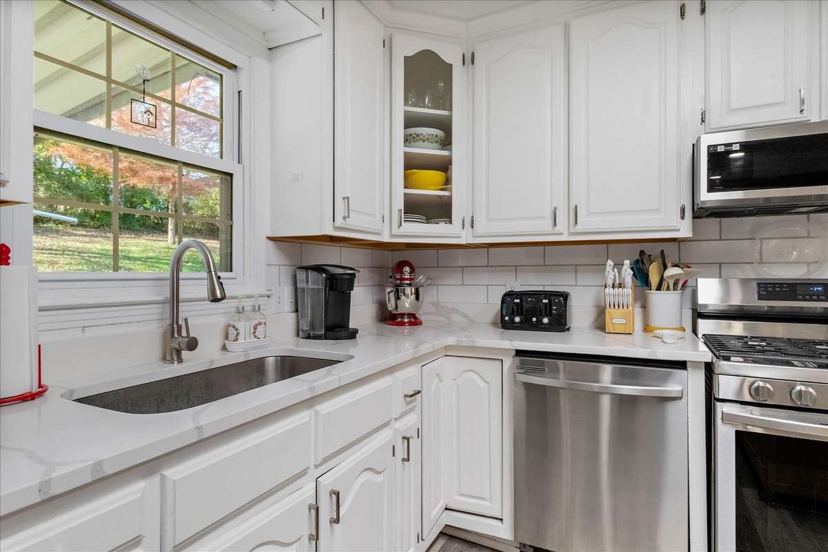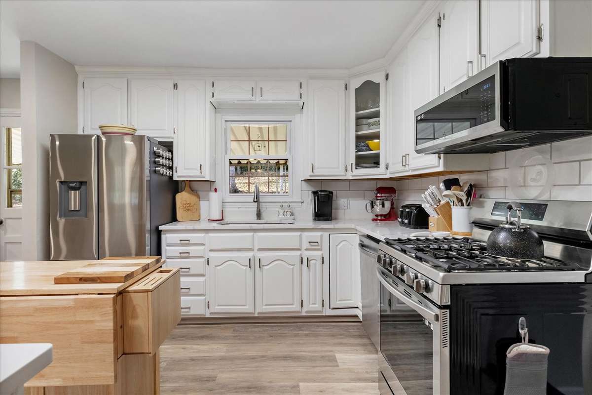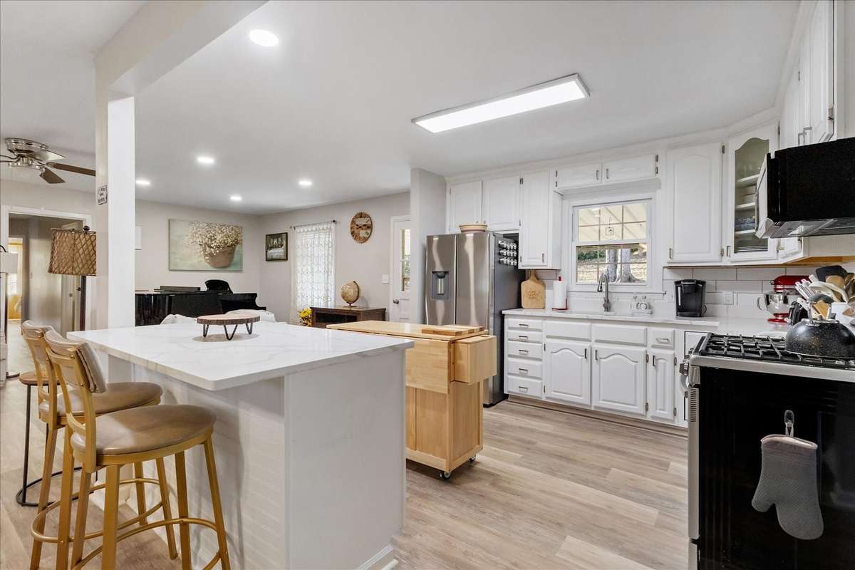 This beautiful updated home offers a fresh modern feel with a host of recent renovations. Located in a peaceful cul- de- sac, It' s perfect for anyone looking for comfort and style. ( New flooring throughout, Renovated Master Bedroom with Added Bath, Renovated Guest Bedroom with Full Bath, Renovated 3rd Full Bath, Remodeled Living Room, Dining Room and Kitchen W/ New Appliances ( Refrigerator, Gas Range, Garbage Disposal & Sink and Kitchen Island) Added New Laundry Room, Renovated Family Room W/ Wood Heater with a peaceful view of the private back yard , Added Study/ Office in Garage ( 160 Sq Ft) , New Paint inside and out, Surveyed Lot W/ Installed Chainlink fence around Back Yard, New Gutters and Downspouts, New Roof 2023, New Blacktop on Drive 2023, Covered front porch and back deck, Some new Landscaping. The home is move- in ready, with thoughtful updates throughout to make it both functional and stylish. Don' t miss your chance to own this newly- renovated gem!