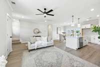 Discover the perfect blend of comfort, style, and modern convenience in this stunning new construction 5- bedroom home, thoughtfully designed to elevate everyday living. The main- floor primary suite offers a true retreat with its expansive walk- in closet, beautifully tiled shower, and elegant double vanity. An inviting living room—centered around a cozy gas fireplace—flows effortlessly into the dining area, creating a warm, open atmosphere ideal for both relaxing evenings and lively gatherings. The bright, sophisticated kitchen shines with crisp white cabinetry, a spacious pantry, and easy access to the walk- in laundry room, while a conveniently located half bath adds to the main- floor functionality. Upstairs, a generous bonus room provides the perfect space for work, play, or entertainment. Thoughtfully placed storage and additional closets ensure everything has its place. Step outside to enjoy peaceful mornings on the covered front porch or unwind on the covered back patio, surrounded by the comfort of a beautifully crafted home that truly has it all.